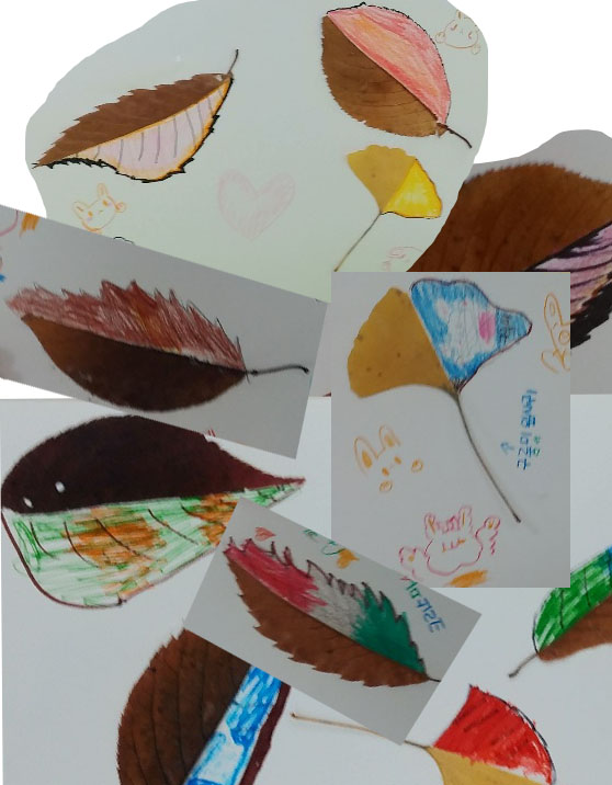 낙엽 반쪽에 다양한 색으로 각자의 개성이 담긴 그림을 그리는 과정이 아주 흥미롭고 재미있는 시간이라고 생각됩니다.
