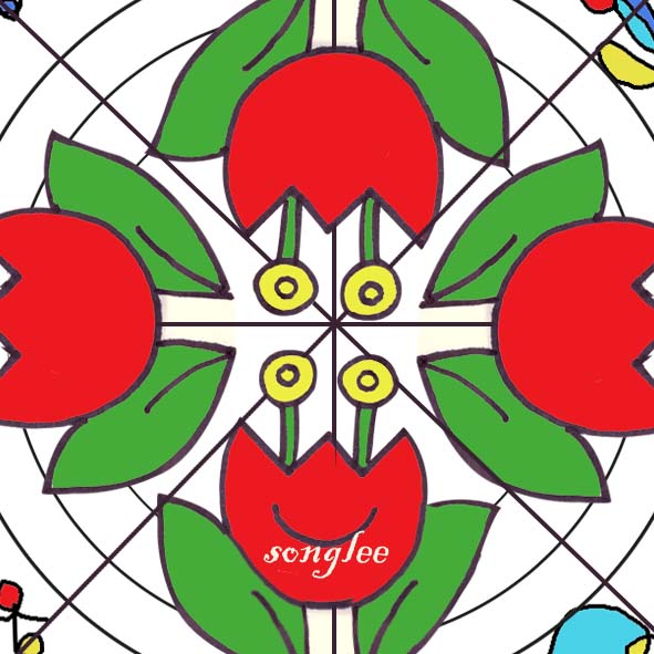 어떤 일을 하게 되었을 때 당연히 잘할 수 있다고 생각했었으나 아는 길도 물어 가라 라는 속담처럼 다시 한번 두드려 보고 물어보았더니, '아이코 또 개고생 할 뻔했네. 내가 노력해도 합격할 수 없는 일이었어', '휴 빨리 알게 되어 다행이야'라고 생각하고 정리할 수 있었던 하루였어요. 그러한 마음으로 그린 만다라는 일의 결과와는 반대로 마음의 평화와 기쁨이라는 의미를 담고 있는 만다라입니다. 튤립 꽃 네 송이가 있으며 중앙에 노란색 꽃 술이 있습니다. 더하기와 곱하기의 상징으로 선을 그리게 되었어요. 무의식 적으로 그린 것이지만 중앙의 꽃 술은 펜타클 4의 동전 4개와 비슷하다는 생각을 하게 되었어요. 돈을 더하고 곱하여 불리면 지금보다는 더 여유 있는 삶을 살 수 있을 테니 지나친 바람은 아니라고 생각합니다.