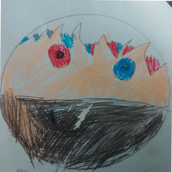 이 어린이가 그린 마스크라는 만다라를 보고 마음이 아팠던 것 같아요.