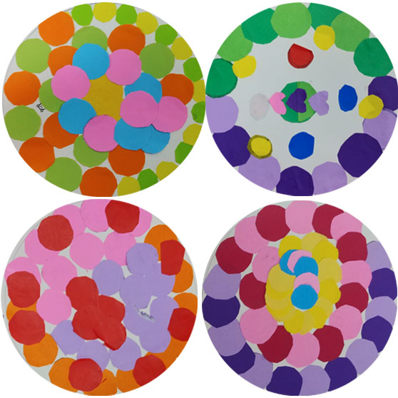 -이제부터 원이 그려져 있는 종이에 원형의 색종이를 붙입니다. 안에서 시작할지, 밖에서 부터 붙일지, 중간부터 붙일지는 그날 마음이 가는 대로 진행하면 됩니다.