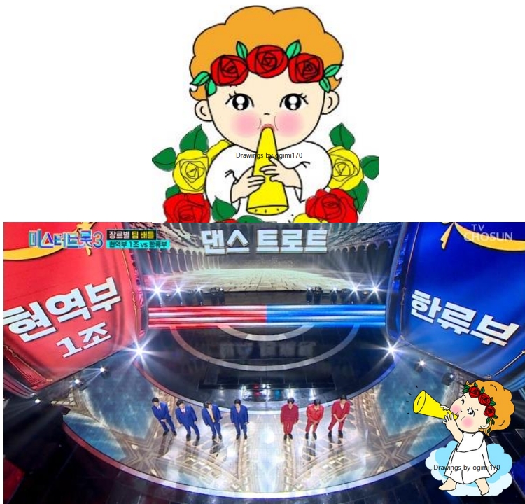 현역부 1조와 한류부는 각각 <대찬인생> - 박현빈, <남자는 말이 없다> - 조항조 곡을 선택해서 '댄스 트롯'을 장르로 대결을 진행했습니다.