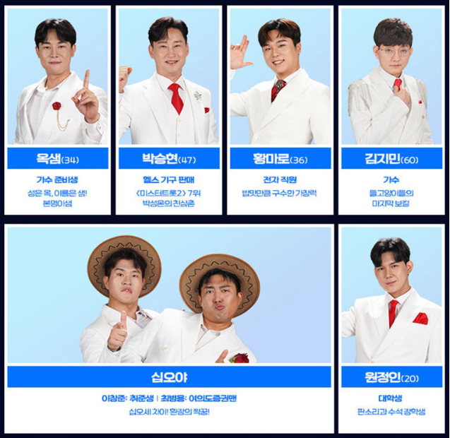 1. 강민수 2. 강성구 3. 강훈 4. 견우 5. 고영태 6. 고은준 7. 고정우 8. 김민욱 9. 김용빈 10. 김지민