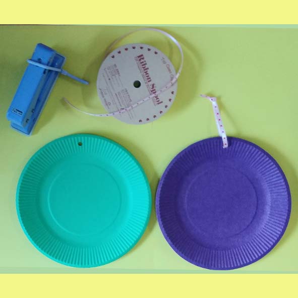 준비물 중 리본과 펀치의 사용법은 간단합니다. 종이접시에 펀치로 구멍을 뚫어서 리본 끈을 끼운 후 걸어둘 수 있도록 한 것이구요, 저는 인원수대로 30개를 준비했습니다. 컬러 종이접시가 넉넉히 준비된다면 어린이 스스로 원하는 색을 선택해서 작업을 진행하며 더욱 효율적인 미술활동이 될 수 있을 거예요. 저는 인원이 많은 관계로 무작위로 나누어 준 후 작업을 진행했는데, 제 스스로 아쉬움이 컸어요. 대신 어린이들이 자율적으로 친구들과 바꿀 수 있게 설명을 해 주었는데 원하는 색으로 바꾸는 친구들은 없었습니다.