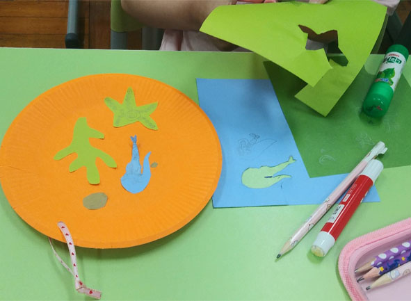 컬러 종이접시가 화려하고 예쁜 데다가 자신이 원하는 색종이를 이용해서 바닷속 이야기를 만들어 가므로, 이 시간을 무척 즐거워합니다. 주어진 시간이 부족할 정도로 1, 2학년 어린이들도 초 집중해서 열심히 열심히 작업을 하였어요. 이 나이 또래에는 가위를 자유롭게, 빠르게 활용할 수 없으므로 가위를 사용하는 날은 늘 주의하도록 지도해 주어야 합니다. 빠르게 하는 것보다 안전하게 진행하는 것이 중요하니까요.