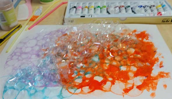 수채화물감으로 거품을 만들고 추상표현 그리기