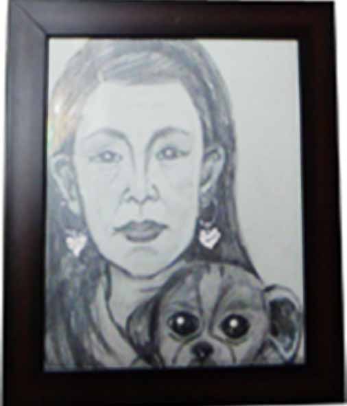 어느날 위의 젊은 여인을 만나서 강아지를 안고 있는 모습을 그렸던 시간을 기억합니다. 이분 집에 도착 후 현관문 앞에서 벨을 누르자 '문을 열어 놓았으니 들어오라는' 목소리가 들리더군요. 들어갔으나 반려견을 안고 앉아 있었어요. 사실 알고 보니 젊은 이분은 양쪽 다리를 쓸 수 없는 분이셨지요. 그러나 예쁘게 화장을 하고 이 초상화 그림을 그리는 시간을 기다리고 있었습니다. 그리고 최고로 예쁘게 꾸미고 화장을 하고는 예쁘게 잘 그리고 싶다고 하셨던 날이 기억에 남습니다.