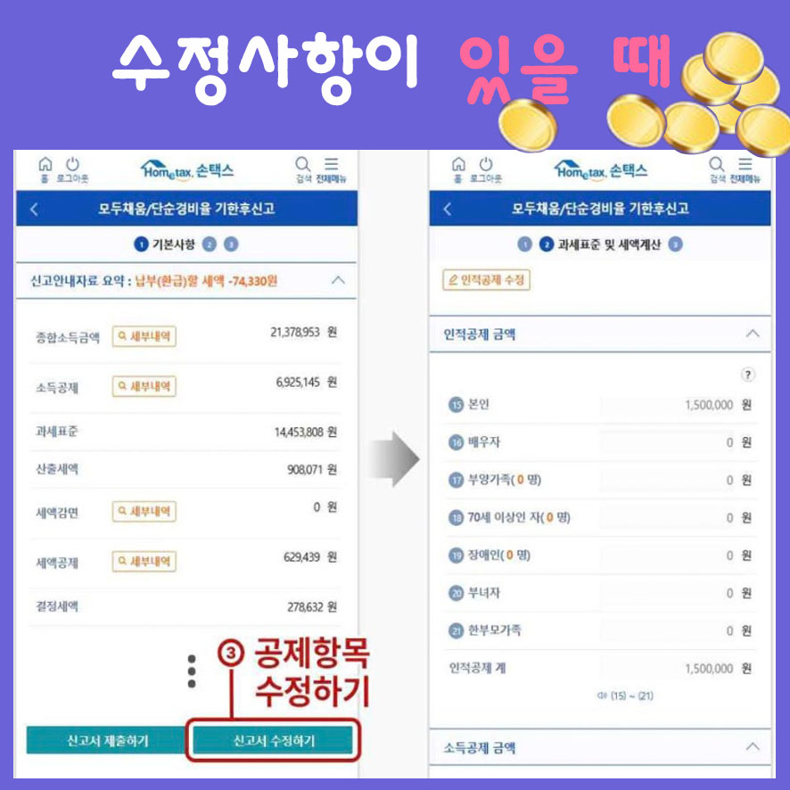 그다음에 공제항목들을 수정하고 다시 제출하면 됩니다.