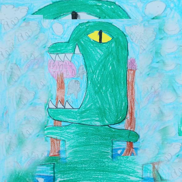 위의 사진에서 처럼 각 각 다른 색으로 색칠되어 완성된 동물캐릭터입니다. 자세히 살펴보면 배경도 서로 다르고 서로 다른 이야기가 담겨 있는 재미있는 그림이지요? 색칠한 필압도 경쾌하고 시원시원한 것을 볼 수 있습니다. 이렇게 색칠이 완성된 후에 입체적인 효과를 내고 움직이도록 두 번 접었어요. 그러니까 접었을 때는 입을 다문 상태이고 펼치면 위의 그림과 같은 모습을 띄는데, 이렇게 접었다 폈다 하면서 움직임을 느끼면서 노는 시간을 마련했습니다. 완성 과정이 쉽고도 재미있다 보니 아이들이 지치지 않고 각각 다른 동물 캐릭터를 두 개씩 완성했습니다.