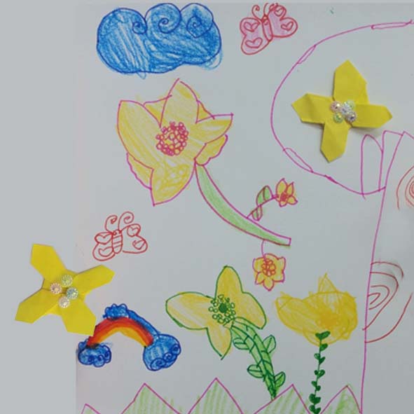 꽃샘추위가 주변을 맴돌고 있어요. 그래도 낮동안에는 따뜻하고 포근한 날씨가 봄이 오는 인사를 하고 있는 듯합니다. 봄이 오는 길목에서 봄의 꽃인 개나리 종이 접기를 준비해 보았습니다. 화사하고 노란 예쁜 개나리꽃을 접어보고 그림을 그리면서 아이들의 새 학기의 시작에 힘을 불어넣어주고자 했습니다. 개나리꽃 종이접기를 순서대로 함께 진행하였는데 이 시간이 좀 길게 걸렸습니다. 저학년 아이들에게는 조금 어렵게 느껴지는 과정이었지만 모든 어린이들이 함께 진도를 맞추어 가며 진행하였습니다. 색종이 접기로 꽃을 만드는 것도 중요하지만 상상하여 개나리 꽃나무를 그리고 풍경을 그려보므로 계절을 느껴보도록 하는데 오늘 미술수업의 핵심이었습니다.