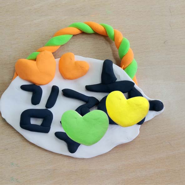 이렇게 정성껏 만든 아이들의 이름표가 완성 되었습니다. 충분히 마를 때까지 조심하도록 알려 주어야 합니다. 소프트 클레이는 마르는 시간이 길기 때문에 그 시간 동안에 잘 못 만지면 형태가 찌그러들 수 있으므로 주의해야 합니다. 아이들이 자신의 이름을 디자인하여 붙인 칼라클레이 이름표를 두 손에 받쳐 들고 가는 모습을 보니 저의 마음도 뿌듯했답니다.