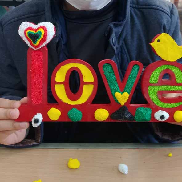 영어 단어 안을 색으로 채워 넣은 후 하트, 병아리를 폼 클레이로 색을 붙이고 나머지 부분들도 스스로 색을 선택하여 장식하고 꾸며서 완성해 나갔습니다. 돌봄 교실에서 칼레 클레이 수업은 아이들에게 인기가 정말 많아요. 촉감이 부드럽고 다양한 색들이 아이들의 마음을 동요시키며 만들어 가는 과정들도 쉽기 때문에 이 시간을 늘 기다린답니다. 오늘도 이렇게 러브판 만드는 시간을 통해서 웃음꽃이 피어나는 행복한 시간을 보냈습니다. 우리 아이들의 클레이 시간은 앞으로도 쭈욱 이어질 거예요. 다음 주에도 더욱 멋지고 재미있는 시간이 기다리고 있답니다. 이 러브판 단어처럼 여러분들에게도 사랑이 넘치는 행복한 시간이 되시길 바랍니다.