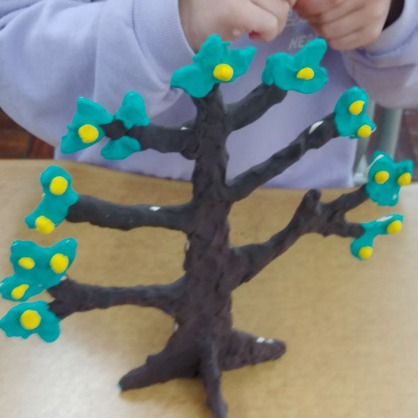 칼라클레이로 상상하여 사랑의 나무 만들기