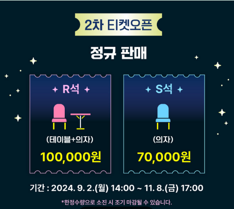 단독 예매처 : YES24, R석과 S석을 예매할 수 있어요.