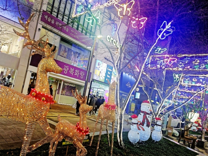 광복로 크리스마스 트리축제는 화려한 트리장식과 함께 시민참여 프로그램과 문화공연으로 축제분위기를 만긱할 수 있습니다.